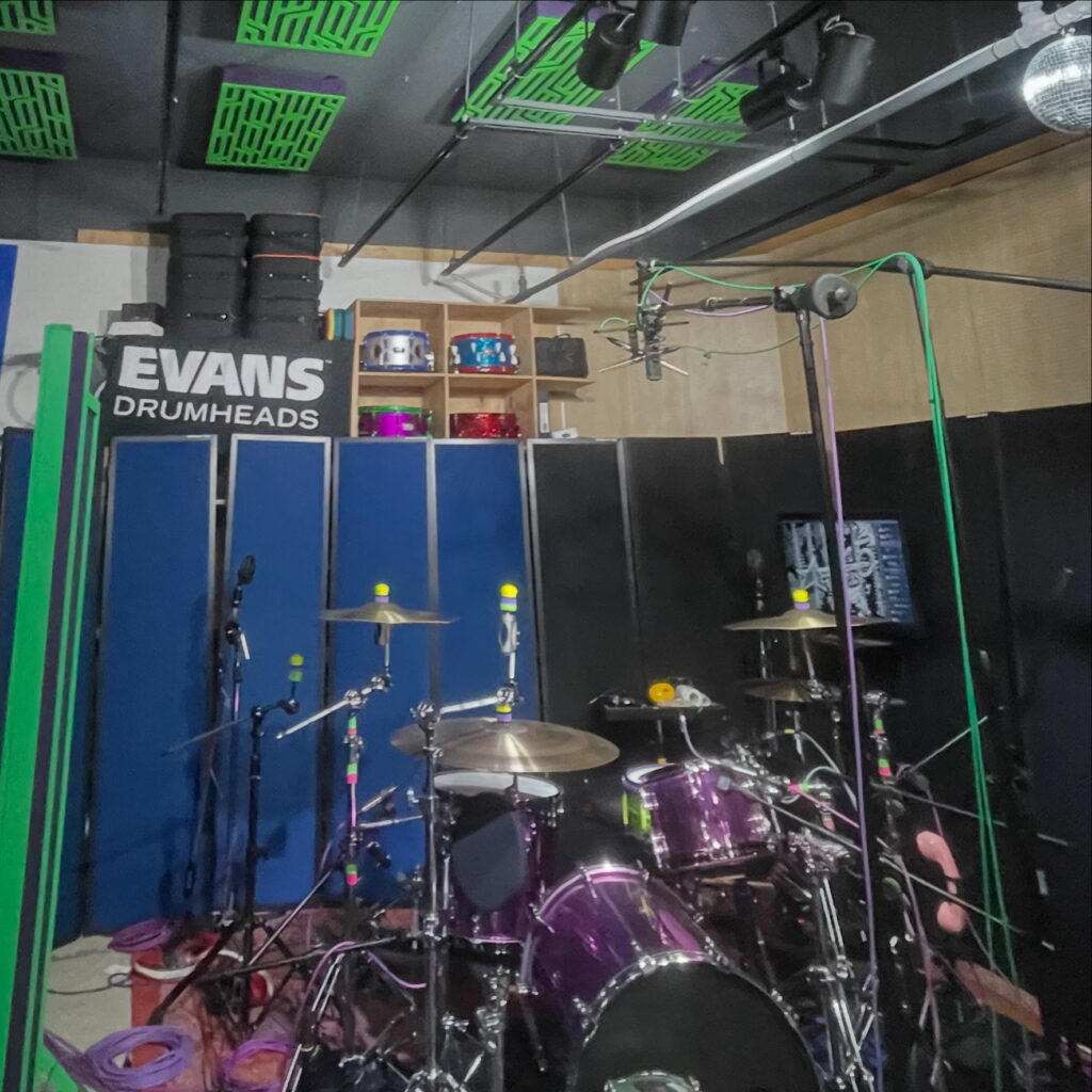 設置後、演奏時のレスポンスの変化を即座に体感しました。不要な反射音が抑制され、スティックタッチに対するアタックが明瞭になり、チューニング時に意図したピッチと響きがより正確に表現されるようになりました。特にキックやタムの低域が整理されたことで、演奏中のサウンドバランスをより的確に判断できるようになり、ドラマーにとって非常にコントロールしやすい環境が整いました。自然なライブ感を保ちながら、演奏とレコーディングの両面で確かな改善効果を実感しています。