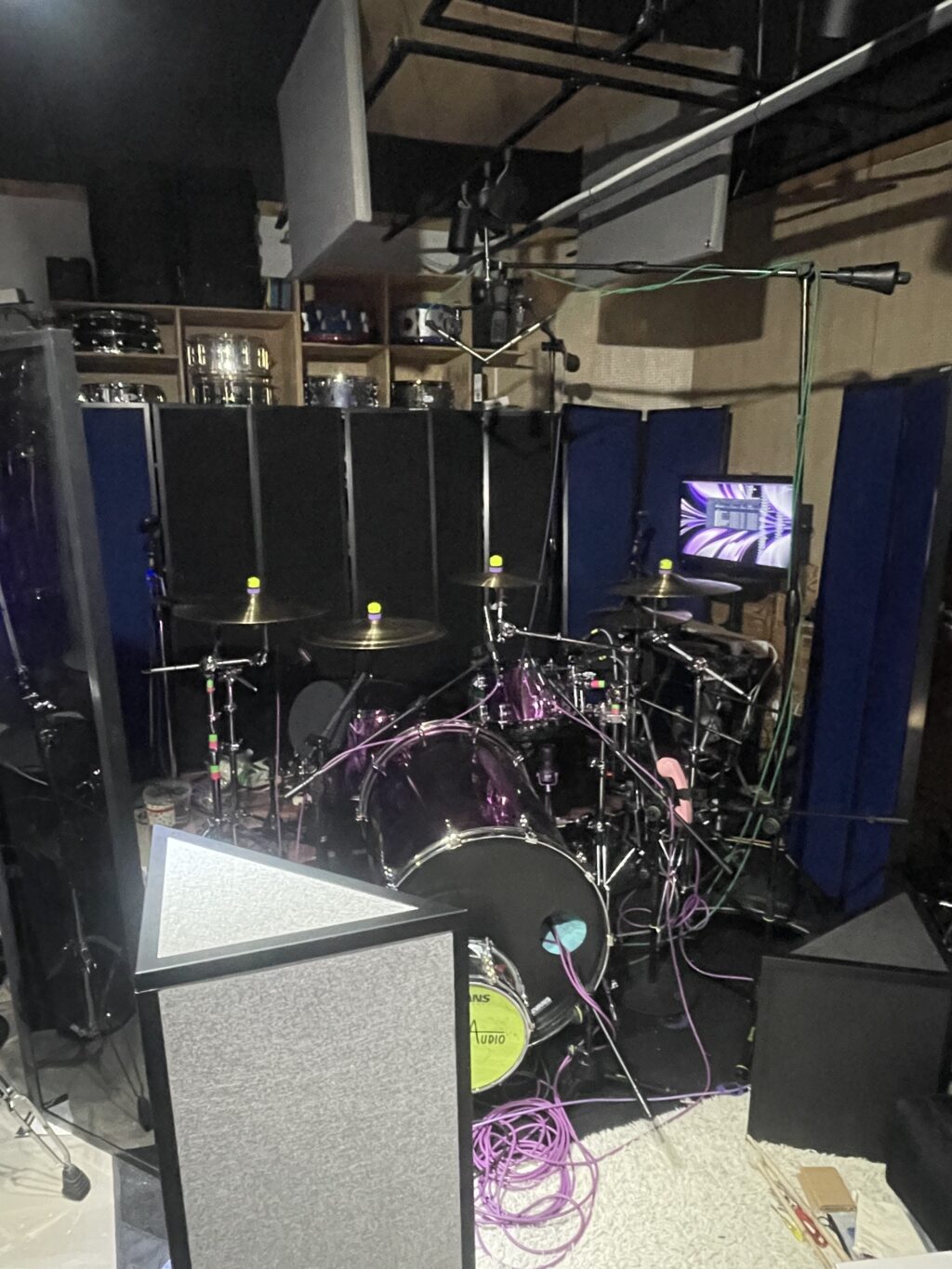 ドラマーとしてレコーディングを行う際、常に課題となっていたのは、演奏時に感じる響きと実際の録音結果との間に生じるギャップでした。空間内の過度な反射音により、スティックタッチによるアタックやダイナミクスが不明瞭になり、タムやキックの中低域が濁ることで、チューニングの意図が正確に反映されない状況が繰り返されていました。演奏者としての打感とサウンドをより正確にコントロールし、ドラム本来のキャラクターを明確に録音するため、本製品を導入しました。