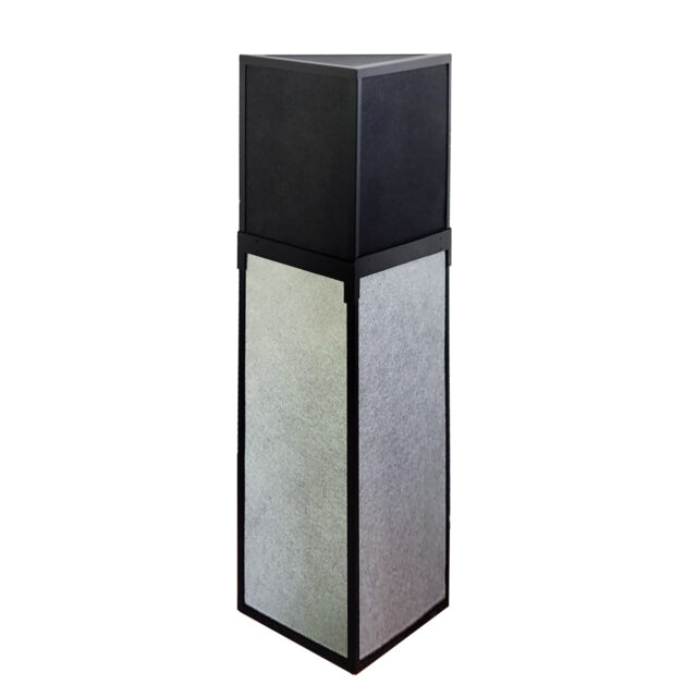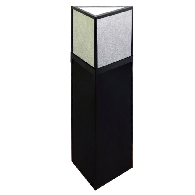 - 三⾓錐の形状で全⾯吸⾳⾯のため、部屋の隅やスピーカー中央に配置。『SHIZUKA Stillnes s Panel SDM』と組み合わせることで広範囲の吸⾳性能を発揮